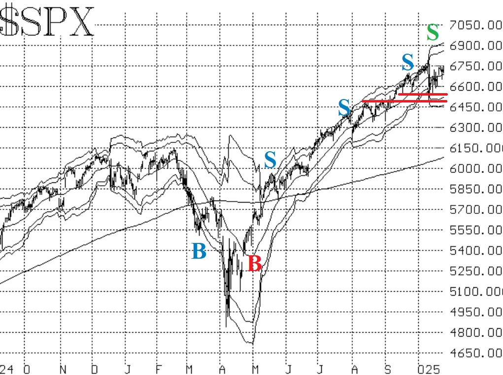 The equity-only put-call ratios had rolled upward and generated sell signals as well over the past two or three weeks. These sell signals came from very overbought conditions, and they are still in effect.