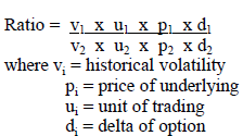 When one trades two markets in an intermarket spread, he needs to calculate the correct quantity to trade. The following formula does the job: